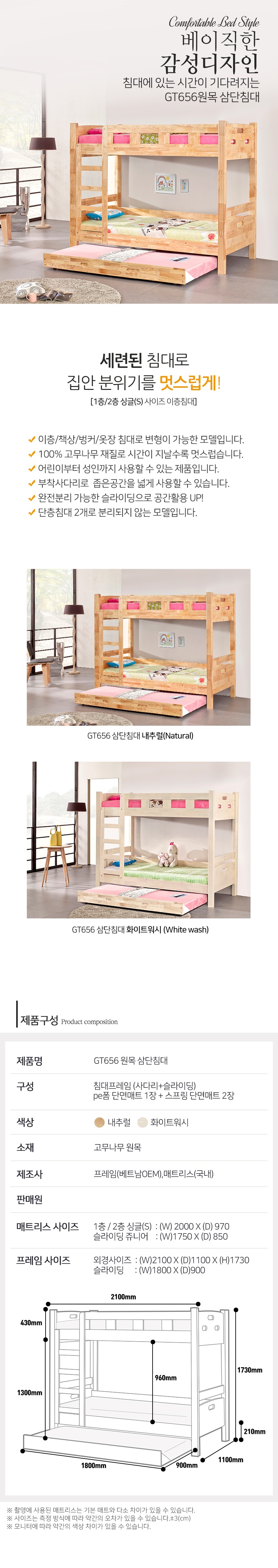 DK657 원목삼단 침대 (NO-650H560)