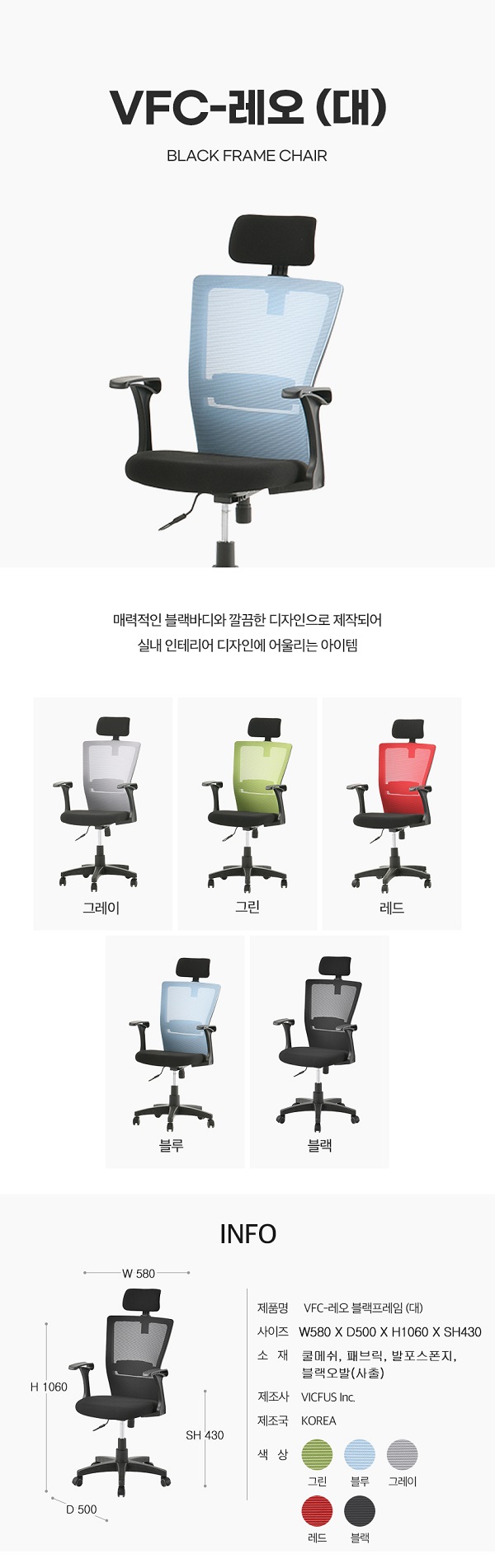 VFC-레오 블랙프레임 (대) 메쉬의자(NO-220148Y143)