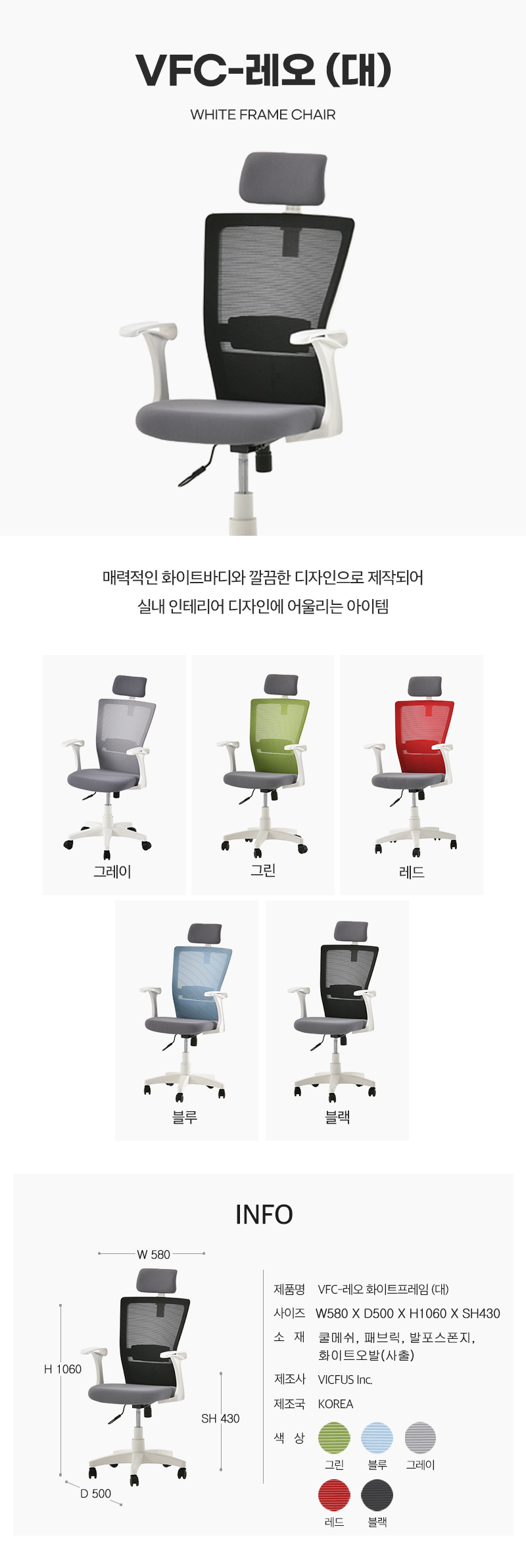 VFC-레오 화이트프레임 (대) 메쉬의자(NO-220153Y148)