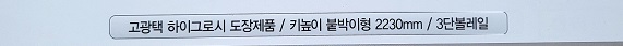 사이즈; 가로 3000MM*깊이600MM*높이2230MM