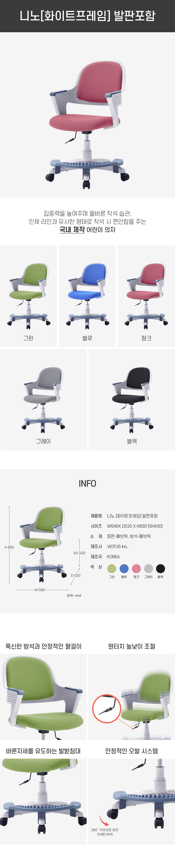 VFC-니노 [화이트프레임] 발판포함 아동용 의자 (NO-20252307H148)